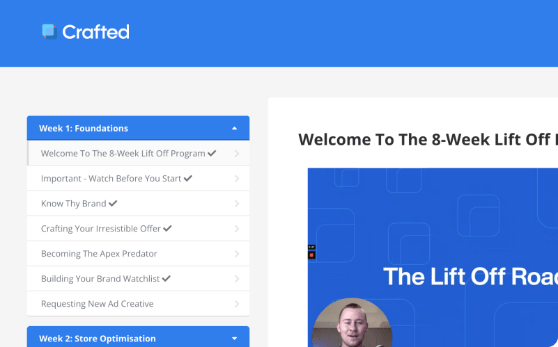 Partner with Crafted and you’ll receive access to our 8-Week Lift Off Video Program. Improve your marketing ROI using our proven strategies and insights from 100’s of brands.
